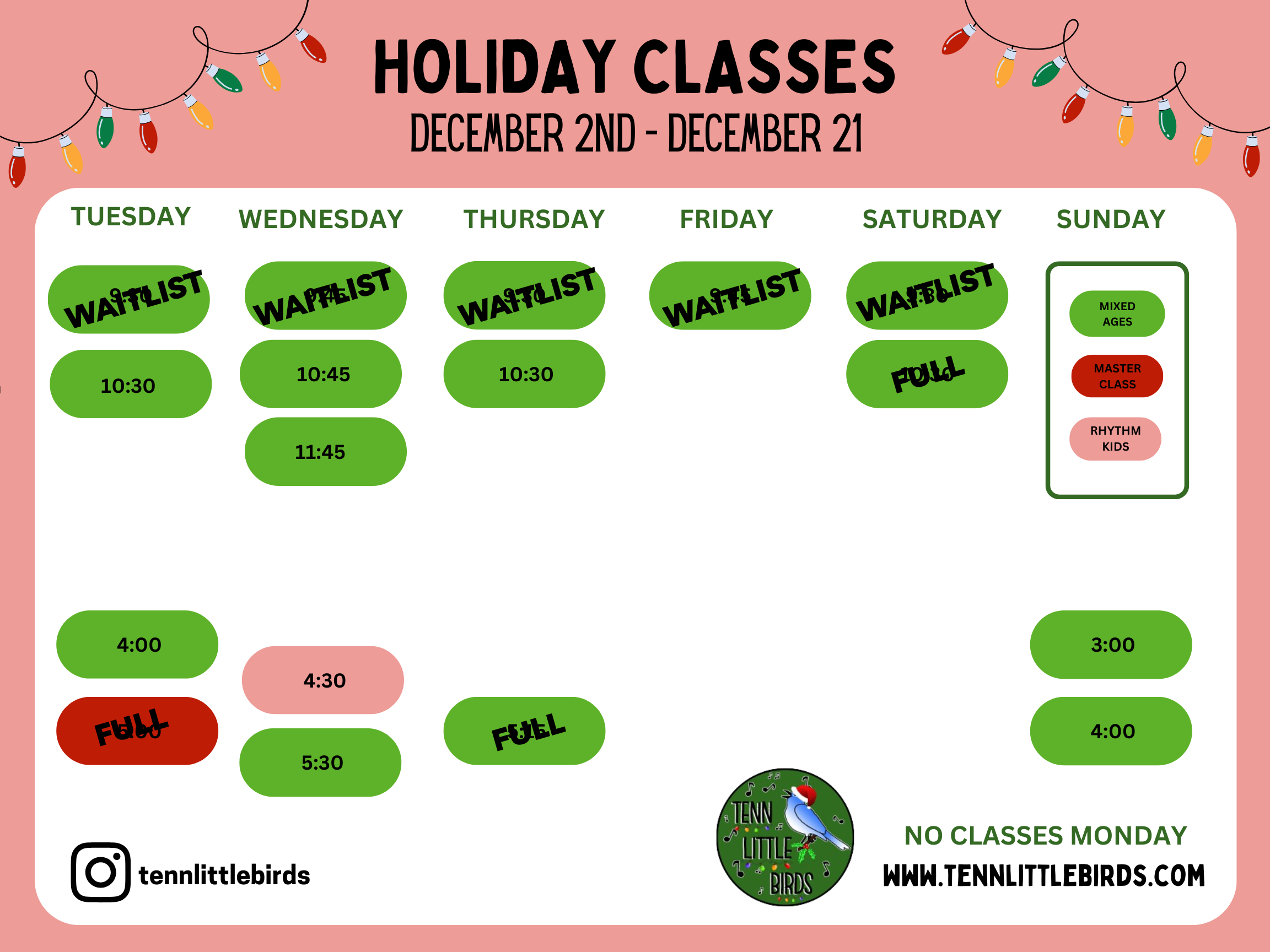 - Open play at the Tenn Little Birds studio before and after your music class.