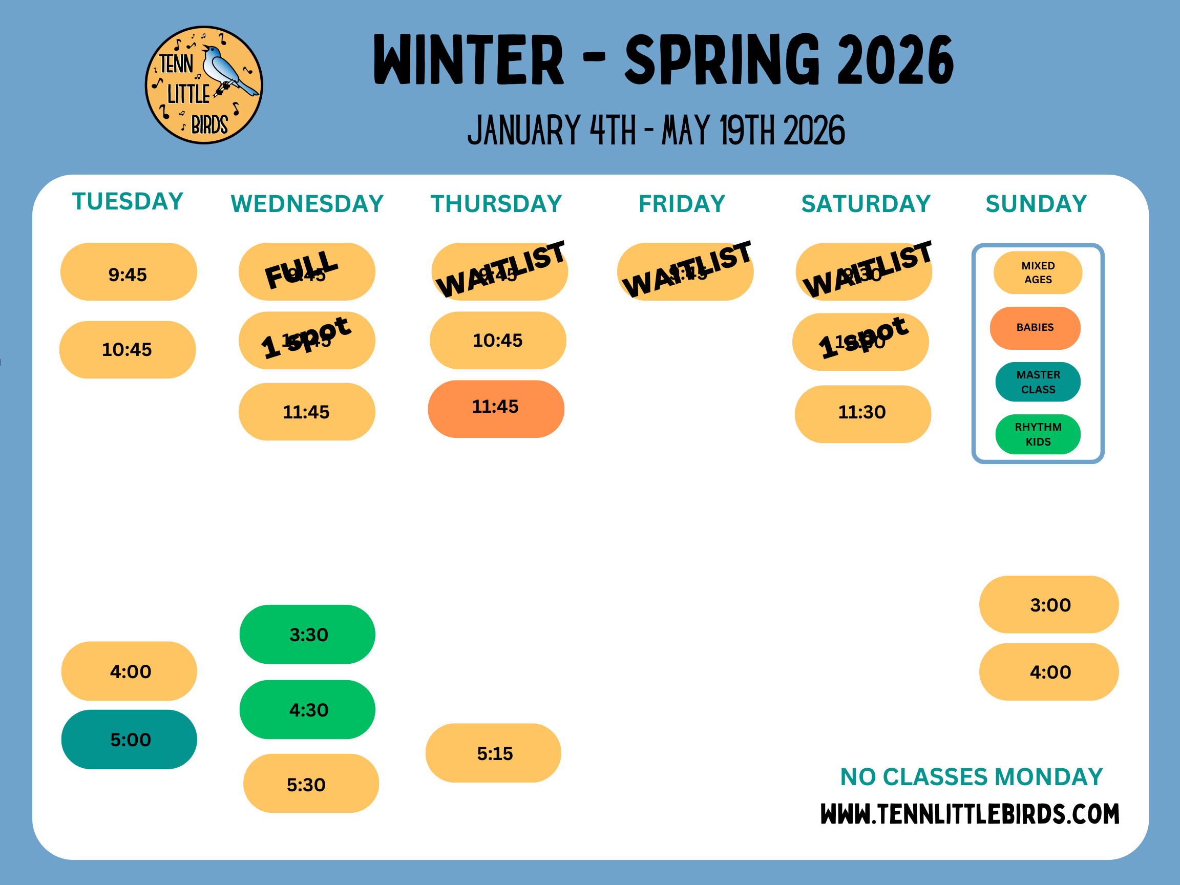 Join our classes anytime throughout the semester! Email [email protected] for more information.