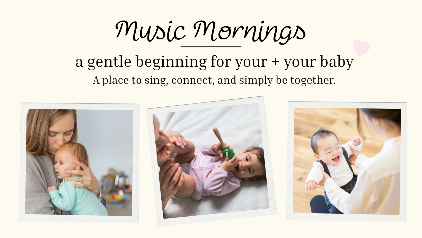 Each Music Morning includes simple songs, gentle movement, and playful musical experiences that support connection between you and your baby.